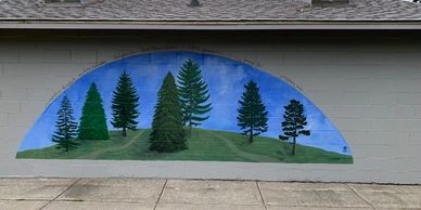 various native trees painted by Vicki Affatati. View the mural adjacent to the central bathroom station.
